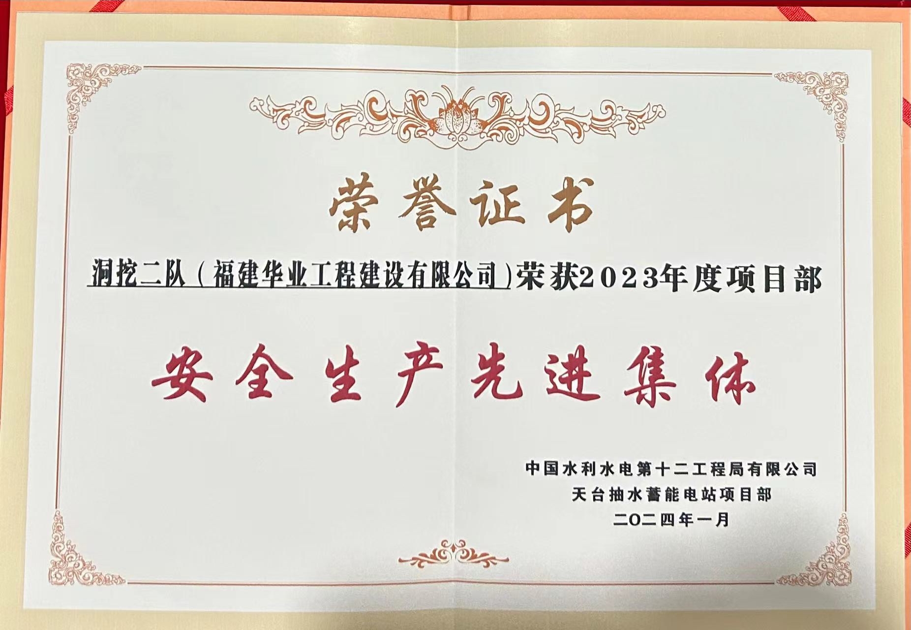 惠州中洞荣获荣誉证书