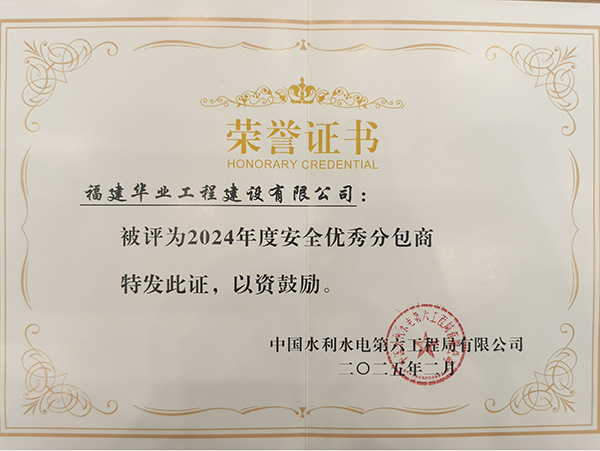 公司荣获“2025年度优秀分包商...