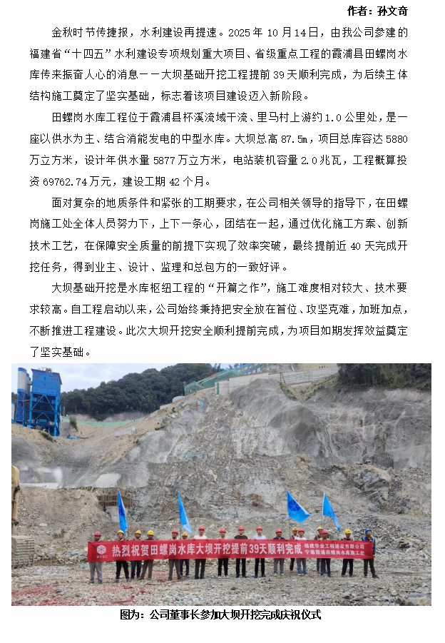 热烈祝贺福建霞浦县田螺岗水库大坝开挖施工完成