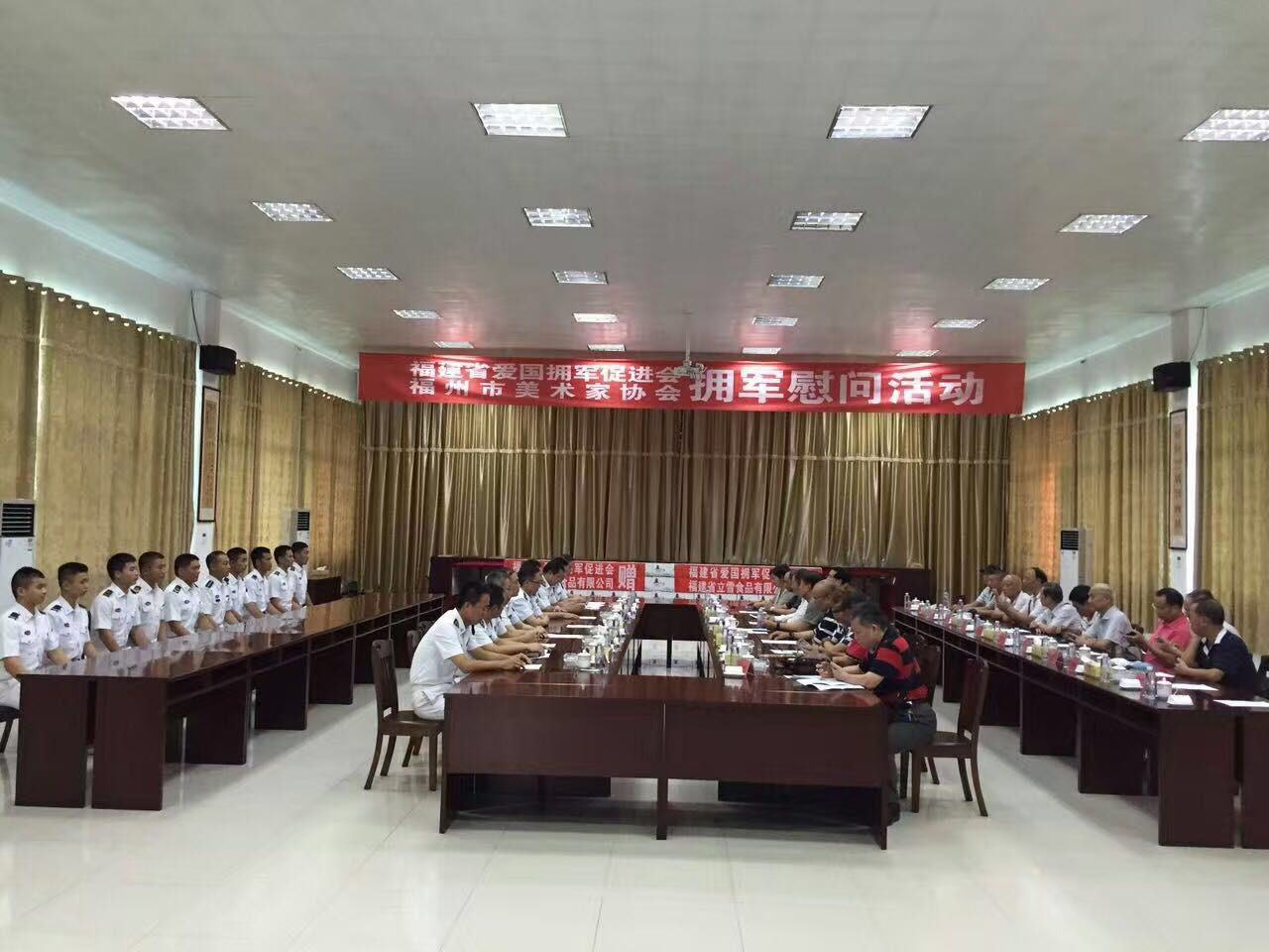 2016年8月25日,福建省爱国拥军促进会开展的“拥军慰问活动”。本次活动,福建省爱国拥军促进会会长率省爱国拥军促进会丶省爱国拥军书画院丶福州市美术家协会的企业家艺术家前往慰问海军战略部队。我司董事长薛钦华同志也积极参与到本次拥军慰问活动当中。在本次活动中,我司董事长作为企业家代表之一,通过与部队官兵交流交谈,去了解部队官兵的生活,为他们送去诚挚慰问与深深祝福。除此之外,还有书画院的十六位书画家为海军战略部队官兵创作数十幅作品,并合作两幅山水花鸟大画,阵容规模空前。