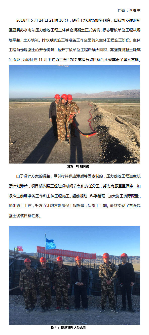 新疆亚曼苏水电站压力前池工程首仓混凝土顺利浇筑