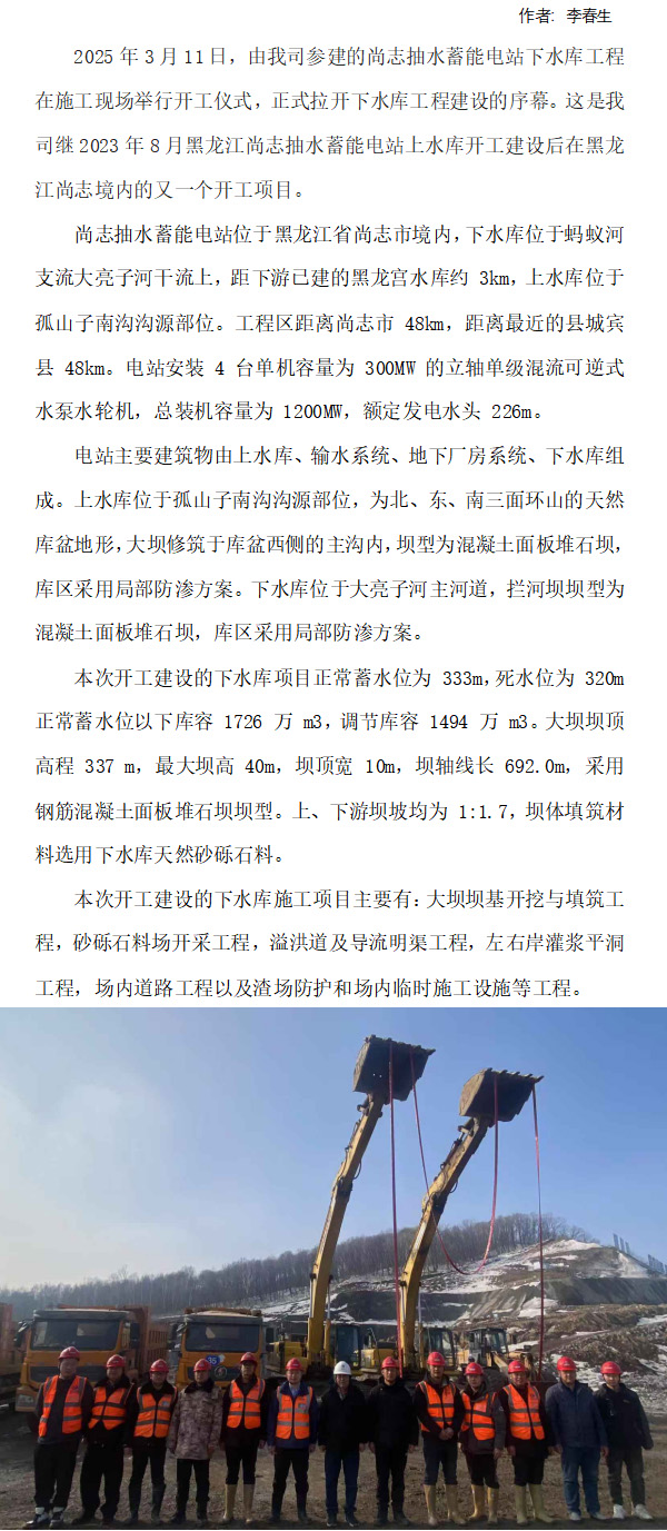黑龙江尚志抽水蓄能电站举行下水库工程开工仪式