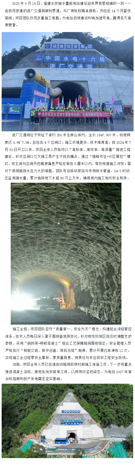 热烈祝贺福建永安抽水蓄能电站进厂交通洞顺利贯通