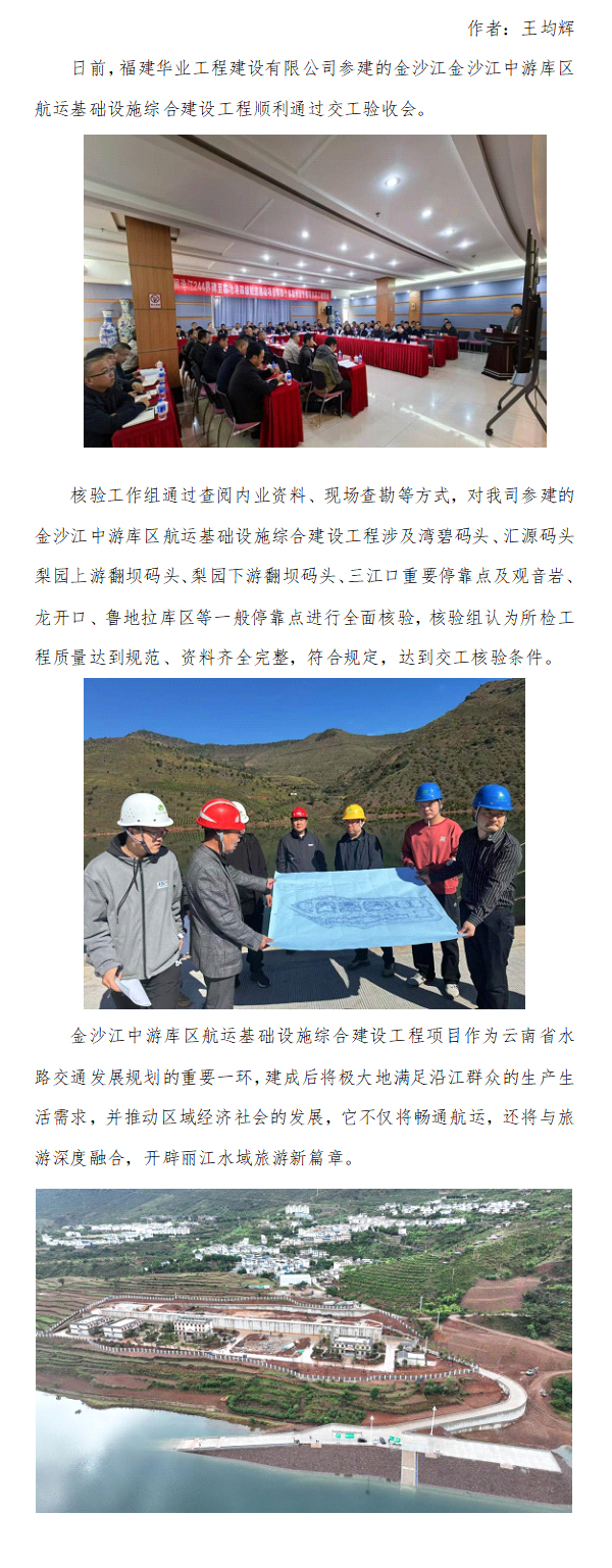 云南金沙江金沙江中游库区航运基础设施综合建设工程顺利交工验收