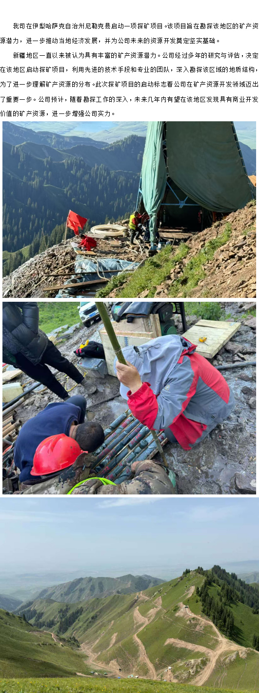 公司宣布在伊犁哈萨克自治州尼勒克县启动探矿项目