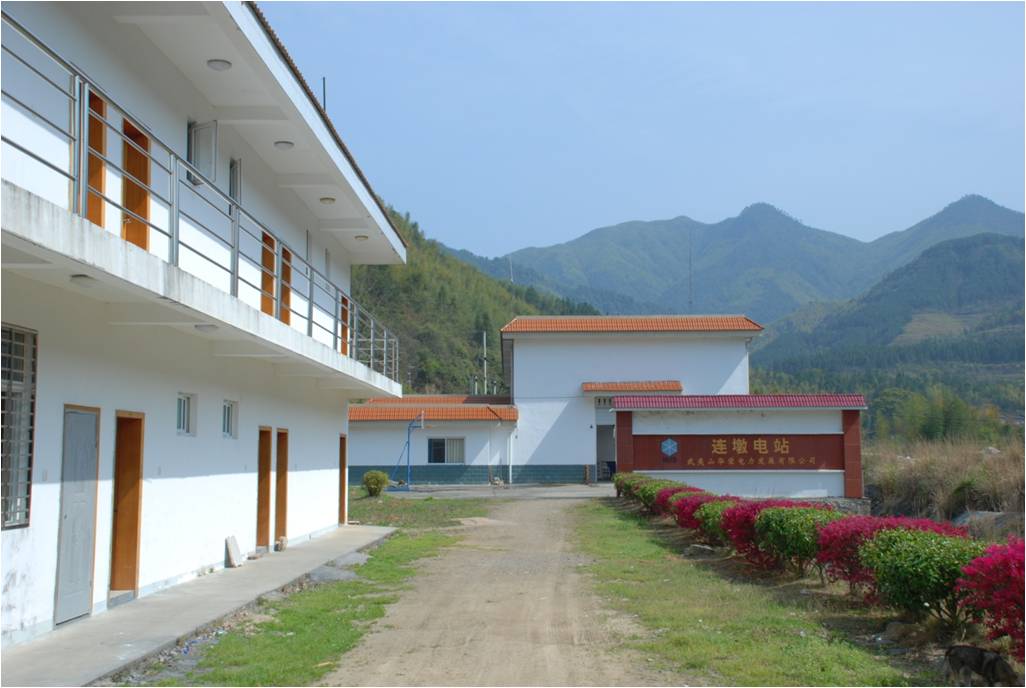 连墩水电站枢纽由拦河坝、引水系统、地面厂房和户外升压站等主要建筑物组成,工程等级为Ⅳ等。大坝为浆砌石重力坝,坝顶高程359m,最大坝高39m,坝顶总长度142m, 坝顶宽为4.0m。进水口布置在距坝址110m的上游右岸,经隧洞引致引水发电厂房,洞泾6m全长791m。连墩水库大坝综合评价安全等级为A级