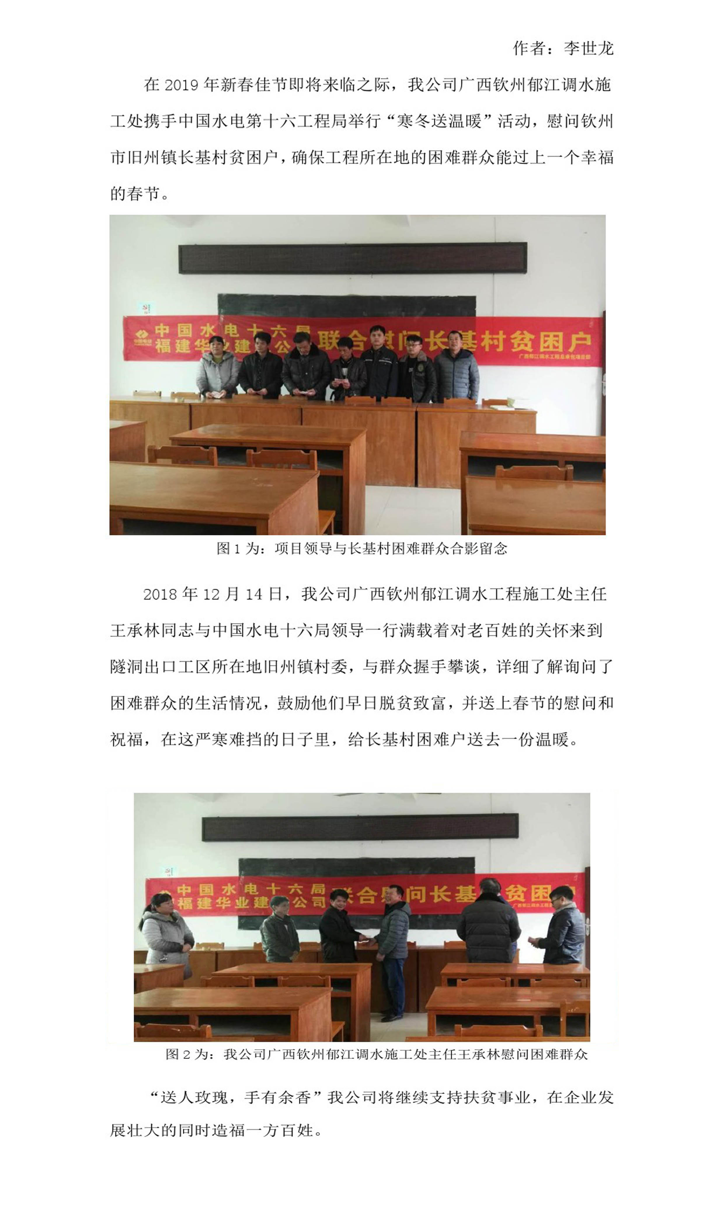 广西钦州郁江调水施工处年终慰问长基村贫困户