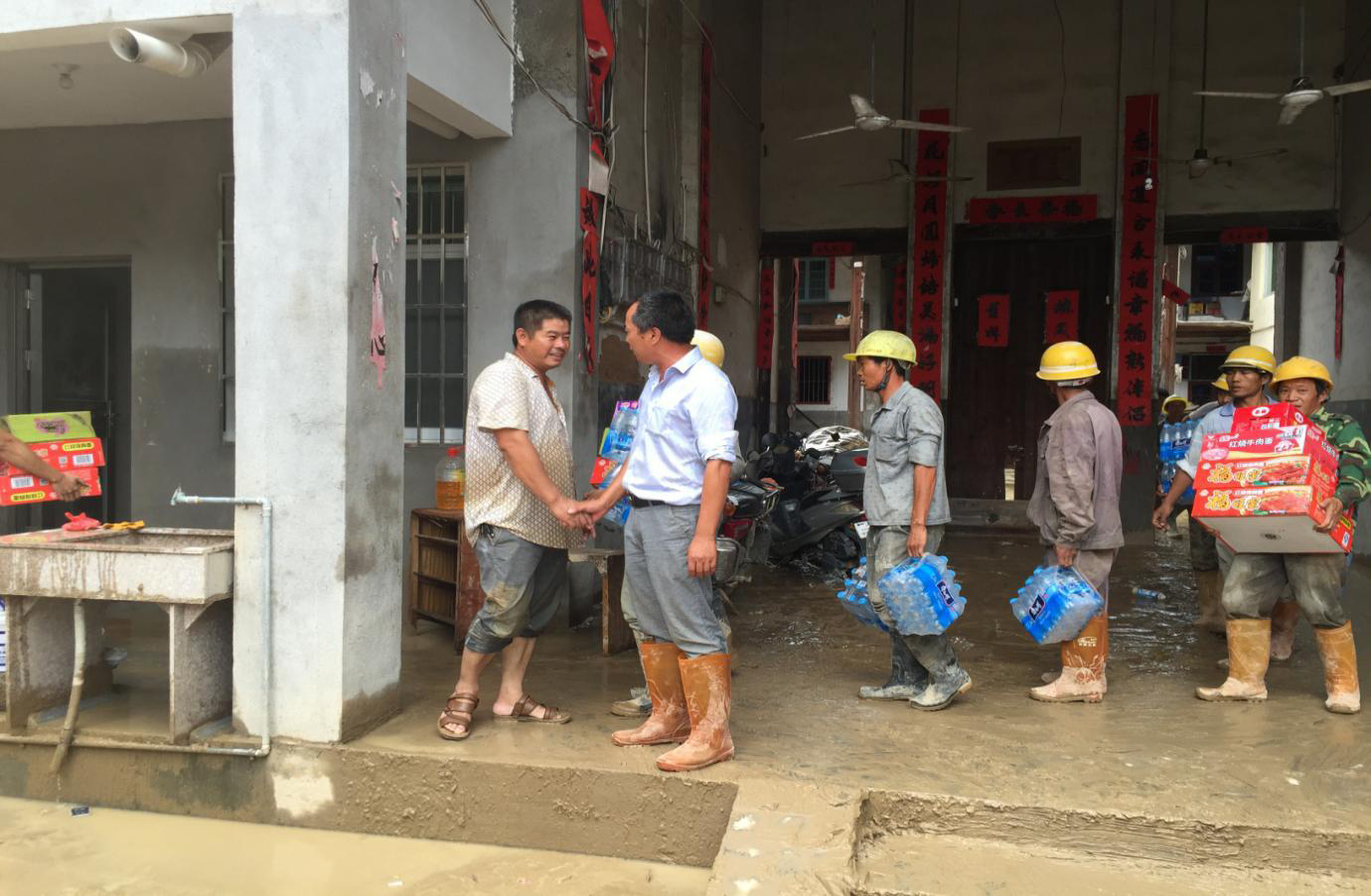 天灾无情,人间有爱。灾害发生后的第一时间,公司董事长薛钦华吩咐公司有关部门做好受灾员工情况统计和走访慰问受灾员工,努力帮助他们解决面临的生活困难,及时把公司的温暖送到员工心坎上。在得知公司员工黄胜的家乡就在重灾地塔庄镇时,立即指派闽清水口施工处管理层领导携带应急物资前往受灾职工黄胜家中,并帮助黄胜清理屋内淤积。由于台风暴雨造成村庄电路中断,闽清水口施工处又将发电机及汽油送至受灾地区。