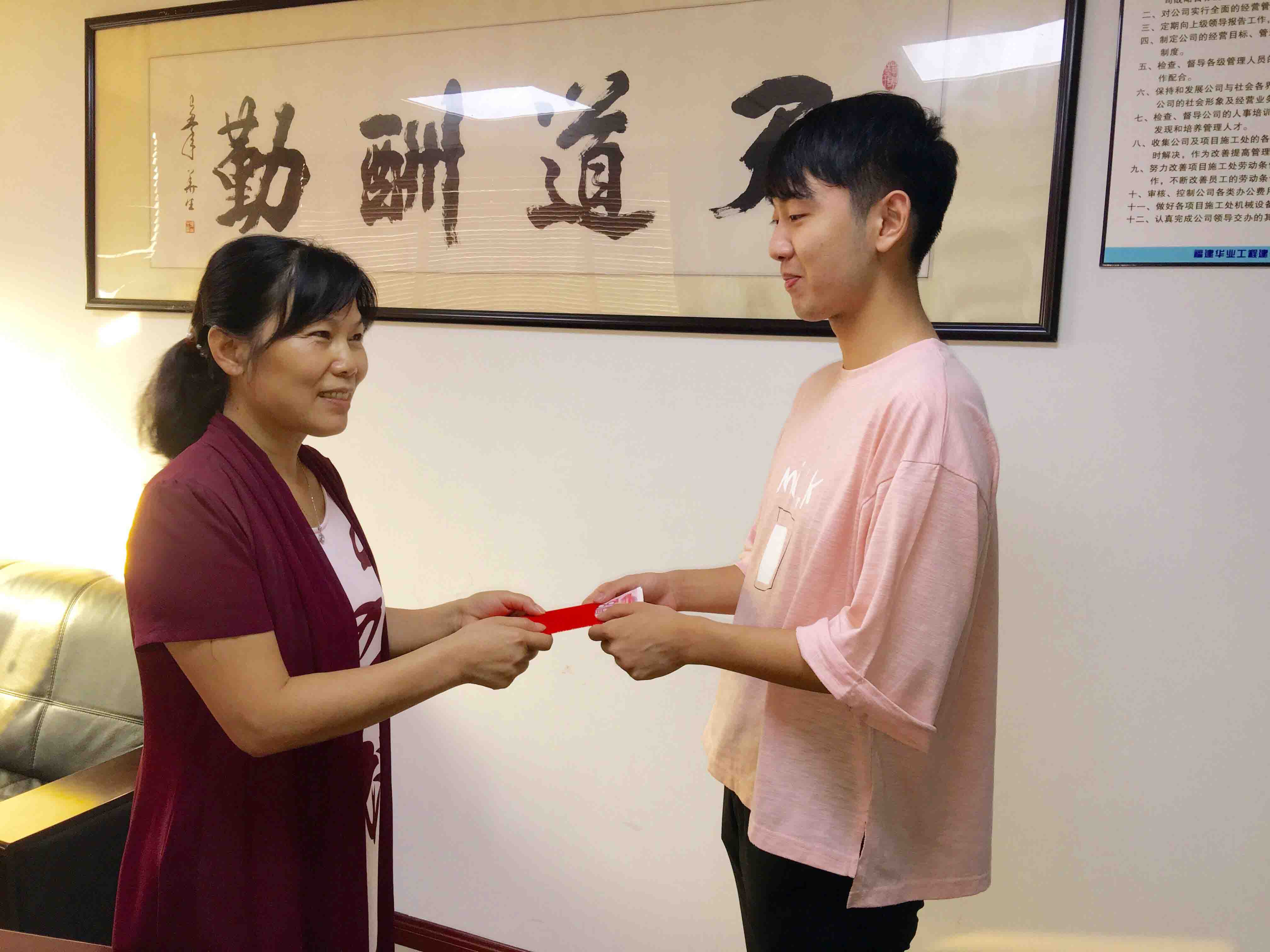 8月4号,潘超逸在结束一个月勤工俭学后,我司领导为学子送上助学金。潘超逸表示:自己会好好学习,将来也力所能及的帮助能帮助的人,让爱随行!